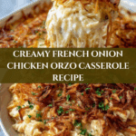 French Onion Chicken Orzo Casserole is a comforting one-dish meal that combines rich caramelized onions, tender chicken, and creamy orzo pasta. This hearty casserole warms you up with its cheesy, savory flavors and is perfect for busy weeknights or casual gatherings.