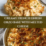 French Onion Orzo Bake is a comforting twist on classic French onion soup, combining caramelized onions with tender orzo pasta and rich cheeses. This bake is creamy, savory, and perfect for a cozy dinner any night of the week.