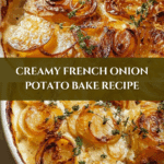 Keywords: French Onion Potato Bake, caramelized onions, potato gratin, baked potato dish, cheesy potato bake, potato casserole
