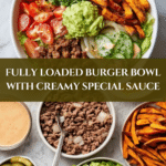 This Fully Loaded Burger Bowl with “Special Sauce” is a fresh, flavorful twist on a classic burger without the bun. It’s packed with seasoned ground beef, creamy guacamole, tangy pickles, and smoky bacon, all layered over crisp romaine lettuce for a satisfying low-carb meal.