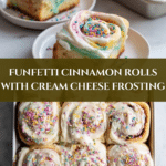 Keywords: funfetti cinnamon rolls, cinnamon rolls, funfetti, cinnamon rolls recipe, breakfast, dessert, festive cinnamon rolls
