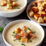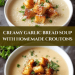 Keywords: garlic bread soup, homemade croutons, creamy garlic soup, French bread soup, comforting soup, easy soup recipe
