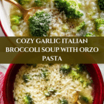 Keywords: broccoli soup, garlic broccoli soup, Italian soup, orzo soup, healthy broccoli recipe, easy soup recipe