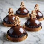 Indulge in these elegant Gingerbread Latte Mousse Domes, featuring a spiced gingerbread cookie base, light coffee-gingerbread mousse, and a glossy white chocolate mirror glaze. Perfectly festive and sophisticated, these dessert domes combine warming holiday spices with rich espresso and creamy textures, finished with optional charming decorations.