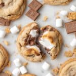 Keywords: egg-free s’mores cookies, gooey s’mores cookies, marshmallow chocolate cookies, easy cookie recipe, no eggs cookie recipe