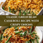 A classic and comforting Green Bean Casserole made with tender green beans, creamy mushroom soup, and crispy French fried onions baked to golden perfection. This easy-to-make side dish is perfect for holiday dinners or any family meal, delivering a satisfying blend of creamy texture and savory flavor.