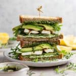 Keywords: Green Goddess sandwich, healthy sandwich, vegetarian lunch, fresh sandwich, mozzarella sandwich, avocado sandwich, whole wheat bread, yogurt mayo sauce, herb sauce sandwich