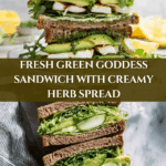 This vibrant Green Goddess Sandwich is a fresh and flavorful lunch option featuring a creamy yogurt-mayo herb sauce, fresh mozzarella, crisp cucumber, avocado, and peppery arugula on whole-wheat bread. The sandwich combines nutritious ingredients with a zesty green goddess dressing for a satisfying, healthy meal perfect for anyone craving a refreshing and wholesome sandwich.