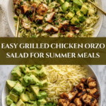 This Grilled Chicken Orzo Salad is a vibrant and refreshing summer meal that’s packed with flavor and texture. Light yet satisfying, it combines tender grilled chicken, creamy avocado, and tangy feta with a zesty homemade dressing. Perfect for lunch or a light dinner, it’s sure to become a favorite in your meal rotation.