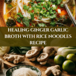 This Healing Ginger Garlic Broth with Rice Noodles is a soothing, nutrient-packed soup perfect for comforting the body and mind. Featuring a fragrant blend of ginger, garlic, turmeric, and fresh vegetables, this broth is both flavorful and nourishing. Paired with tender rice noodles and leafy greens, it makes a wholesome and light meal ideal for chilly days or when you need a gentle detox.