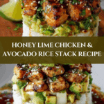 This Honey Lime Chicken & Avocado Rice Stack is a vibrant and flavorful dish that combines juicy grilled chicken marinated in a zesty honey-lime sauce, fluffy jasmine rice cooked in savory chicken broth, and a refreshing avocado, red onion, and cilantro salad. Perfect for a healthy weeknight dinner or a special occasion, it’s easy to prepare and offers a balanced blend of sweet, tangy, and savory flavors with creamy texture contrast.