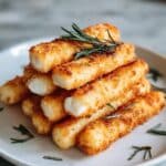 - Serve: Remove from the oven and let cool slightly before serving. Enjoy these crispy, cheesy sticks warm with your favorite dipping sauce.