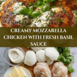 This Irresistible Mozzarella Chicken in Basil Cream Sauce recipe features tender, golden-browned chicken breasts smothered in a rich, creamy sauce infused with fresh basil, garlic, and mozzarella cheese. Perfectly cooked in a skillet on the stovetop, it’s a comforting and flavorful meal that pairs wonderfully with pasta or roasted vegetables.