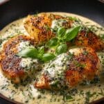 This Irresistible Mozzarella Chicken in Basil Cream Sauce recipe features tender, golden-browned chicken breasts smothered in a rich, creamy sauce infused with fresh basil, garlic, and mozzarella cheese. Perfectly cooked in a skillet on the stovetop, it’s a comforting and flavorful meal that pairs wonderfully with pasta or roasted vegetables.