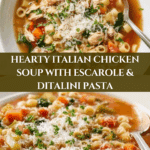 Keywords: Italian chicken soup, ditalini pasta soup, escarole soup, comfort food, hearty soup, bone-in chicken soup