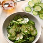 Store the cucumber salad in an airtight container in the refrigerator for up to 2 days. The cucumbers will soften over time, so it’s best enjoyed fresh or within a day. When ready to serve, give it a gentle toss. This salad is best served chilled and should not be frozen.