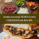 This Korean-Inspired Kimchi Bulgogi Cheesesteak combines the bold flavors of marinated beef and spicy kimchi with melty cheese and tender sautéed vegetables. It’s a delicious twist on a classic sandwich that’s perfect for a satisfying lunch or dinner.