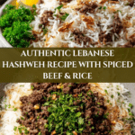 Keywords: Lebanese Hashweh, Hashweh recipe, Lebanese rice dish, basmati rice pilaf, vermicelli rice, ground beef recipes, Middle Eastern rice, spiced rice with meat, Lebanese 7 spice dish