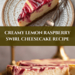 This Lemon Raspberry Swirl Cheesecake features a buttery graham cracker crust layered with a creamy, tangy lemon-flavored cheesecake and a vibrant raspberry swirl. Baked in a water bath for smooth texture and topped with fresh raspberries, it’s a perfect balance of tart and sweet in every bite.