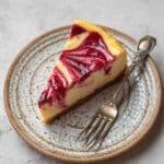 This Lemon Raspberry Swirl Cheesecake features a buttery graham cracker crust layered with a creamy, tangy lemon-flavored cheesecake and a vibrant raspberry swirl. Baked in a water bath for smooth texture and topped with fresh raspberries, it’s a perfect balance of tart and sweet in every bite.
