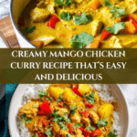 Keywords: Mango chicken curry, coconut curry, easy chicken curry, fruit curry, Indian-inspired recipes, one-pan chicken dish
