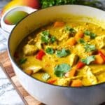 Keywords: Mango chicken curry, coconut curry, easy chicken curry, fruit curry, Indian-inspired recipes, one-pan chicken dish