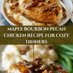 Maple Bourbon Pecan Chicken is a flavorful and elegant dish featuring tender boneless, skinless chicken thighs coated in gluten-free flour, seared to a golden crisp, and simmered in a rich sauce made with bourbon, pure maple syrup, pecans, and a blend of tangy and savory ingredients. This recipe combines sweet, nutty, and smoky notes for a deliciously balanced meal that’s perfect for weeknight dinners or special occasions.
