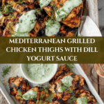 Keywords: Mediterranean grilled chicken, grilled chicken thighs, dill yogurt sauce, healthy chicken recipe, lemon garlic chicken