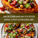 Keywords: Mediterranean stuffed sweet potatoes, roasted sweet potatoes, chickpea salad, healthy vegetarian meal, Mediterranean diet, baked sweet potato recipe