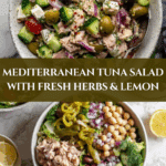 A bright and flavorful Mediterranean Tuna Salad featuring white albacore tuna combined with olives, roasted red peppers, fresh herbs, and a zesty lemon dressing. This refreshing salad is perfect for a light lunch or appetizer and can be served on toast, pita bread, or over greens for a satisfying Mediterranean-inspired meal.