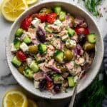 A bright and flavorful Mediterranean Tuna Salad featuring white albacore tuna combined with olives, roasted red peppers, fresh herbs, and a zesty lemon dressing. This refreshing salad is perfect for a light lunch or appetizer and can be served on toast, pita bread, or over greens for a satisfying Mediterranean-inspired meal.