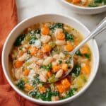This hearty Mediterranean White Bean Soup is a comforting and nutritious dish packed with flavorful vegetables, white beans, and fresh spinach. Perfect for a cozy meal, it features aromatic herbs and is finished with a sprinkle of grated parmesan cheese for a delightful touch.