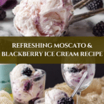 This Moscato & Blackberry Ice Cream combines the sweet floral notes of Moscato wine with the rich freshness of blackberries for a unique and refreshing treat. Creamy, fruity, and lightly boozy, it’s perfect for warm days or special gatherings.
