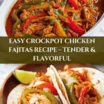 This Mouthwatering Crockpot Chicken Fajitas recipe delivers tender, flavorful chicken slow-cooked with colorful bell peppers, onions, garlic, and salsa. The low-and-slow crockpot method infuses the chicken with vibrant Mexican-inspired seasonings creating an easy, hands-off meal perfect for busy days. Serve with warm tortillas and your favorite toppings for a crowd-pleasing dinner.