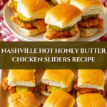 These Nashville Hot Honey Butter Chicken Sliders feature crispy boneless chicken bites tossed in a spicy-sweet hot honey butter sauce, layered on soft Hawaiian rolls spread with garlic mayo and topped with tangy pickle chips. Perfect for game day or casual gatherings, these sliders deliver a delightful balance of heat, sweetness, and savory flavors.