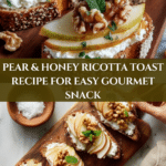 Pear & Honey Ricotta Toast Delight is a simple yet elegant breakfast or snack recipe featuring toasted sourdough bread topped with a luscious ricotta cheese mixture, fresh pear slices, honey drizzle, and a touch of cinnamon and lemon zest. Garnished with crunchy pistachios and fresh mint, this recipe offers a perfect balance of creamy, sweet, and fresh flavors.