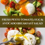 This Pesto Tomato, Egg and Avocado Breakfast Salad is a fresh and vibrant morning dish combining creamy avocado, juicy cherry tomatoes, and perfectly poached eggs, all tossed in a flavorful basil pesto dressing. It’s a nutritious, easy-to-make breakfast salad packed with healthy fats, protein, and bright flavors, ideal for a wholesome start to your day.