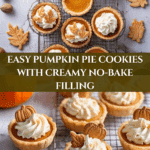 These Pumpkin Pie Cookies offer a cozy shortcut to the classic Thanksgiving dessert. With a buttery cookie base and creamy no-bake pumpkin filling, they’re perfect for those who want all the fall flavors in a bite-sized treat.