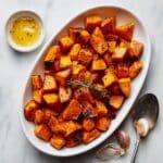 - Finish and serve: Transfer the roasted sweet potatoes to a serving dish and drizzle a bit more olive oil on top for added richness before serving warm.