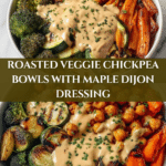 Keywords: roasted veggie bowl, chickpea bowl, tahini dressing, healthy vegetarian recipe, easy roasted vegetables, maple Dijon dressing