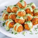 Salmon Balls with Creamy Avocado Sauce make a delicious and healthy appetizer or snack. These tender salmon bites are baked to golden perfection and paired with a smooth, tangy avocado sauce that adds a fresh twist.