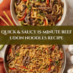 This Saucy 15 Minute Beef Udon Noodles recipe is a quick and flavorful weeknight dinner packed with tender steak and fresh veggies. The rich, savory sauce brings everything together for a comforting and satisfying meal that’s ready in no time.