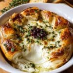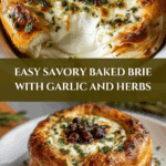 This savory baked Brie with garlic and herbs is an irresistible appetizer that’s both simple and elegant. Warm, creamy Brie is infused with fragrant herbs and roasted garlic, making it perfect for sharing at any gathering.