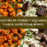 These Savory Butternut Squash & Garlic Herb Steak Bowls combine tender roasted squash, perfectly seared steak, and a creamy garlic herb sauce for a comforting, flavorful meal. Packed with protein and wholesome ingredients, they make a satisfying dinner that’s simple to prepare.