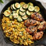 Keywords: garlic butter chicken, zucchini, sweet corn, stovetop recipe, quick dinner, flavorful chicken, healthy chicken dinner, skillet chicken, paprika chicken