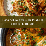 Keywords: slow cooker chicken, peanut chicken, Thai peanut sauce, easy dinner, creamy peanut chicken, slow cooker recipes