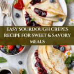 Keywords: sourdough crepes, crepes recipe, sourdough discard recipe, easy crepes, French crepes, breakfast crepes, savory crepes, sweet crepes