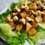 This Spicy Potato Bowl with Tahini Dressing is a flavorful and vibrant dish featuring roasted spicy potatoes and peppers served over fresh lettuce, drizzled with a zesty tahini mustard dressing. Perfect for a hearty vegetarian meal with a delightful balance of spice, tang, and creaminess.