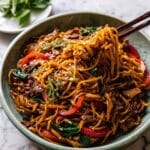 Sticky Beef Noodles is a flavorful and satisfying stir-fry dish featuring tender marinated flank steak, crisp vegetables, and chewy egg noodles coated in a rich, savory, and slightly sweet sauce. Perfect for a quick and delicious weeknight dinner.