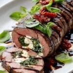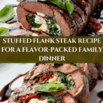 This Stuffed Flank Steak recipe is an irresistible family dinner delight featuring a tender flank steak filled with a savory mixture of spinach, ricotta, mozzarella, sun-dried tomatoes, and aromatic spices. Perfectly seared and finished in the oven, this dish combines hearty flavors and a beautiful presentation that will impress your guests.